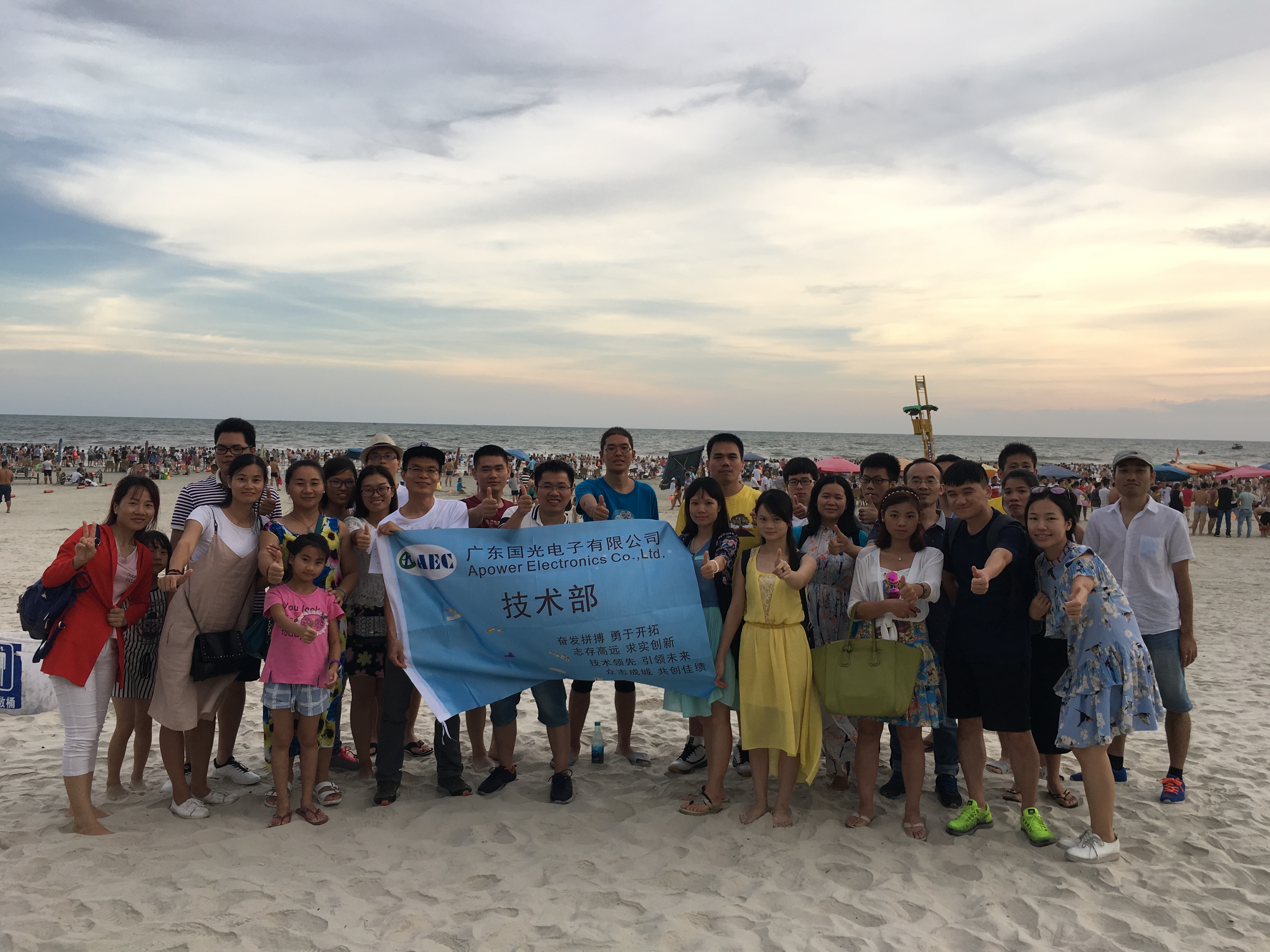 國光電子技術(shù)部本次年度旅游選擇了為期3天的湛江-北??缡∮?,包括家屬在內共有37位旅伴相伴而行。研發(fā)的伍工是位大孝子,陪伴著(zhù)父母同行,游玩的同時(shí)不忘與二老共敘天倫。研發(fā)的王工和制樣的劉班長(cháng)是兩位愛(ài)心媽媽?zhuān)瑤е?zhù)自家小蘿莉,母親的關(guān)愛(ài)與女兒的乖巧讓人贊嘆不已。設計的羅工伉儷同行,祥哥則有“表妹”相伴,羨煞旁人。余老大帶著(zhù)部門(mén)旗幟每到一處都要向獵鷹一樣環(huán)視四方,敏銳搜尋最佳合影地點(diǎn)。而我則帶著(zhù)充足的狗糧。