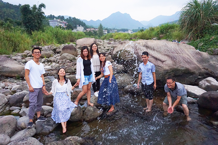 感受完瑤族的獨特文化后,出發(fā)去了燕子窩,開(kāi)玩笑說(shuō)是部門(mén)阿燕的家了,吃了一頓美美的大餐,在主家的院子里坐在涼椅上看著(zhù)旁邊的大河塘,等待著(zhù)大明湖畔的夏雨荷的出現。小憩之后部門(mén)另一個(gè)考完科一的小伙伴前來(lái)和我們匯合,也很為他感到高興,科一穩穩的過(guò)了。接下來(lái)我們兵分倆路,一路去買(mǎi)吃的,另一路去到我們住的農家樂(lè )鄉村小別墅探路,房子旁邊有清澈的溪水還有石頭,忍不住脫了鞋襪用最儉樸的方式去嬉鬧,一群人遇著(zhù)一塊石頭都可以玩半天,各種搞怪,各種拍照,上演了一幕幕美女救英雄的場(chǎng)景。
