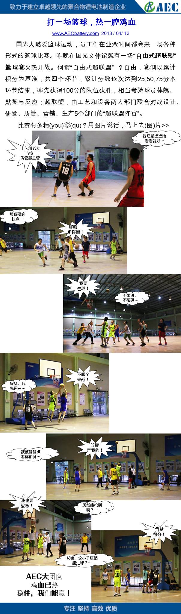 國光人酷愛(ài)籃球運動(dòng),員工們在業(yè)余時(shí)間都會(huì )來(lái)一場(chǎng)各種形式的籃球比賽。昨晚在國光文體館就有一場(chǎng)“自由式超聯(lián)盟”籃球賽火熱開(kāi)戰。