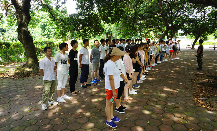 不一會(huì )兒,身穿迷彩服的教官出現在我們面前,野外拓展也隨即正式展開(kāi)。